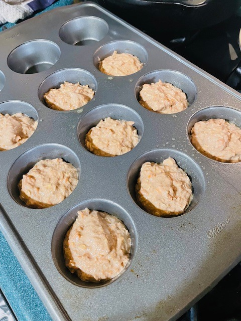 Preheat oven 350 degrees grease 9 wells in a cupcake tin.