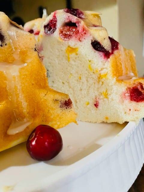 Bake 38-43 minutes. Remove when inserted skewer comes out clean. Let cool in pan for 20 minutes. Place cake plate of choice over Bundt pan, lift and flip, cake should release from Bundt and end up on cake plate.