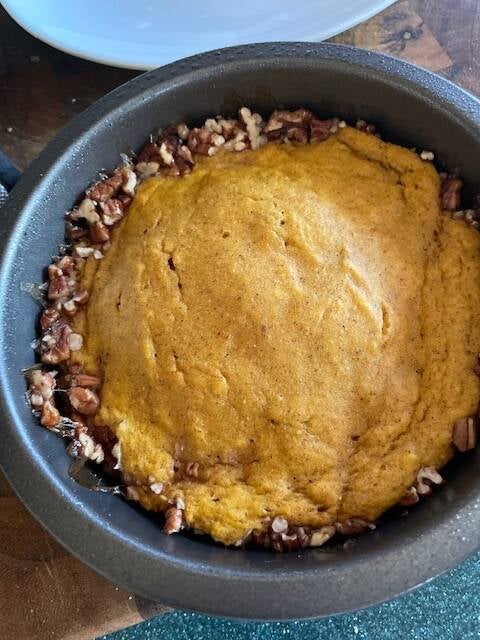 Remove from oven and let cool at least 20 minutes, turn out upside down onto desired plate.