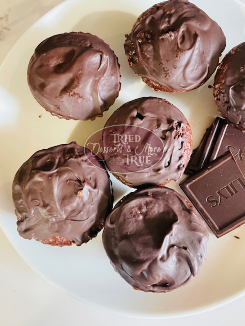 When completely cool, microwave chocolate with 1 tbsp of water, 20 seconds, stir, 15 seconds, stir until completely melted. Frost top of each cake. Refrigerate until set