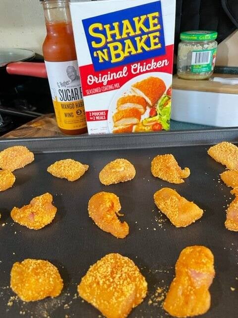 1- 8/9 oz. chicken breast, cut into 16-17 nuggets