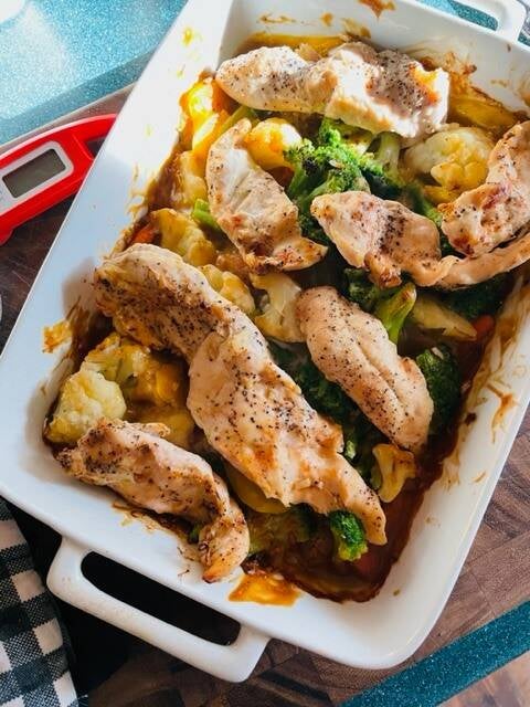 Real quick dinner, 10 minutes to prep and 40 minutes to cook.