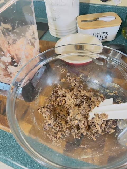 To a large bowl add: spices, sauces, and breadcrumbs, mix that up into a paste, add beans and mash together, add chicken and mix until well combined.