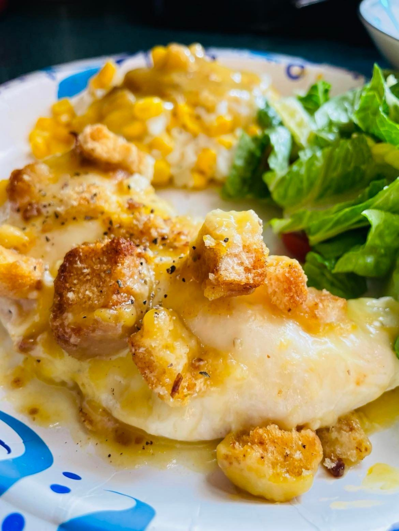 2 oz. of Seasoned Croutons, lightly crushed, I like Great Value