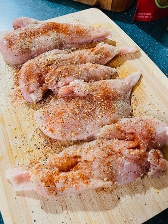 Paprika, Garlic salt & pepper seasonings, I use Kinders The Blend