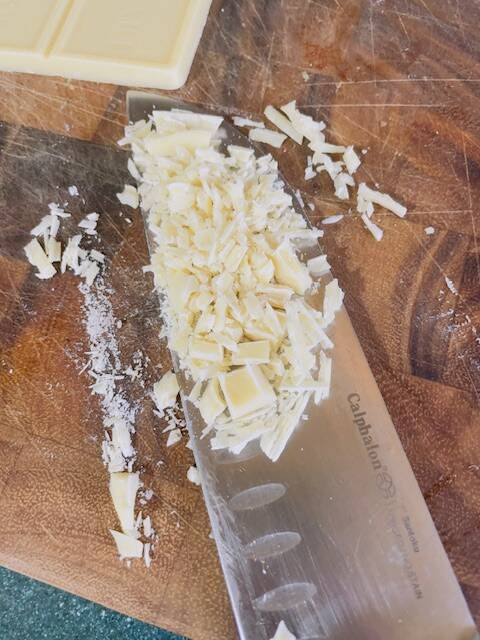 30 grams of sugar free white chocolate bar, chopped, I use Lily's