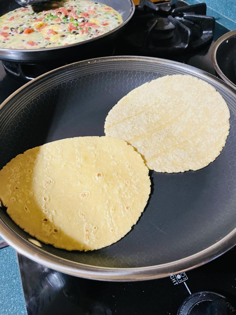 Heat tortillas until hot in a heated skillet. I like to wrap the heated tortillas in a hand towel until I’m ready to serve. This keeps them warm without continuing to cook. If you wrap in tinfoil they usually become hard by the time they are ready to eat.