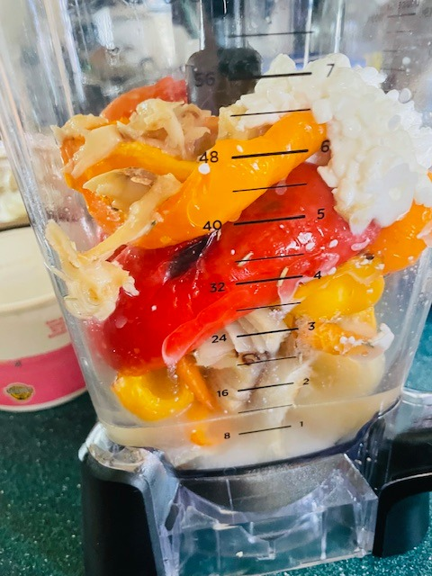 Use whatever vegetables you like. Blending the veggies with the cottage cheese gives it a nice creamy texture plus the added benefit of protein.